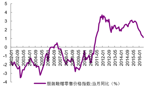 服裝鞋帽零售價格指數(shù)走勢