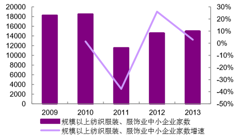 2011 年服裝行業(yè)中規(guī)模以上中小企業(yè)數(shù)量大幅減 少