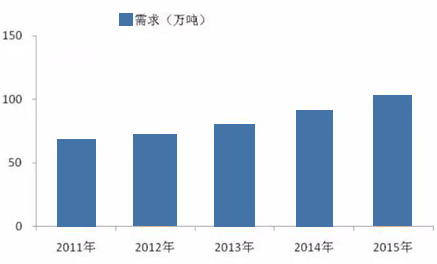 2014年,我國出口非織造布產量為65.6萬噸,占總產量的14.9%,這意味著我國非織造布產的外貿依存度比較低,內需拉動才是最主要的動力。但我國進口的非織造布價格要遠高于出口非織造布價格,也就是說,高端的非織造布材料在國內擁有很廣闊的市場以及巨大的發展空間。2014年,我國針刺非織造布國內需求約88.78萬噸,2015年,針刺非織造布國內需求約101.16萬噸。