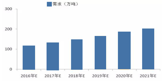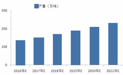 2016年,受宏觀經濟增速放緩、產業轉型升級、去產能、去庫存等因素影響,工業紡織品市場需求增速放緩,結構性矛盾延續,傳統產品將面臨產能過剩競爭。“十三五”期間,隨著我國社會和經濟的持續發展,未來工業、環保、醫療、衛材等產業用紡織品市場,特別是使用新材料、新技術、新工藝生產的中高端產業用紡織品市場,增長潛力較大。預計到2021年,我國針刺非織造布產量約達229.65萬噸。