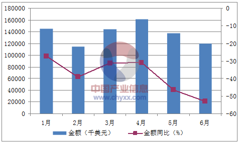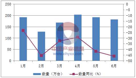 月份數量(萬臺)金額(千美元)數量同比(%)金額同比(%)1月193144,940-23.2-27.12月129115,038-45.4-393月169144,227-32.6-31.14月204161,515-29.3-30.95月192137,549-41.8-46.36月182119,875-46.1-52.8數據來源:中國海關,中經先略數據中心整理