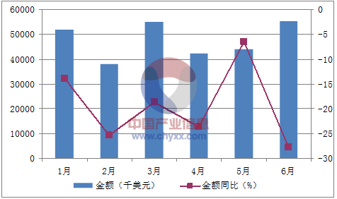 核心提示:智研咨詢數據顯示:2016年1-6月中國電動手表進口數量為538萬只,同比下降9.3%;2016年1-6月中國電動手表進口金額為285,929千美元,同比下降19.9%。2016年1-6月中國電動手表進口量統計表如下表所示: 2016年1中經先略數據中心數據顯示:2016年1-6月中國電動手表進口數量為538萬只,同比下降9.3%;2016年1-6月中國電動手表進口金額為285,929千美元,同比下降19.9%。2016年1-6月中國電動手表進口量統計表如下表所示:2016年1-6月中國電動手表進口量統計表月份數量(萬只)金額(千美元)數量同比(%)金額同比(%)1月8851,746-22.7-13.82月7838,02061.1-25.33月11555,024-5.4-18.74月7942,154-24.4-23.65月7543,857-8.7-6.56月10355,138-16.3-27.8數據來源:中國海關,中經先略數據中心整理2016年1-6月中國電動手表進口數量統計圖