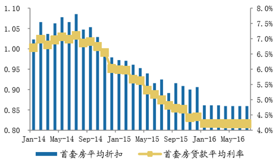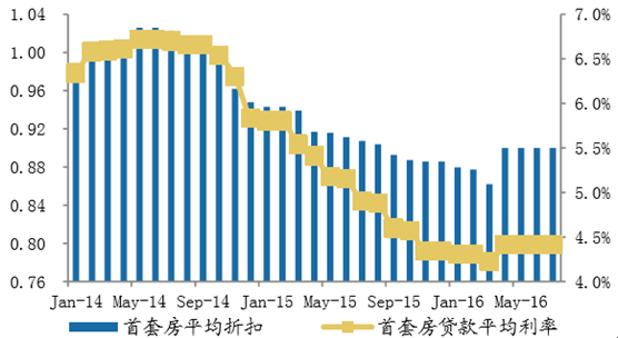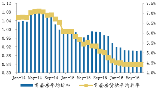 核心提示:2016年7月份首套房貸款利率繼續保持自2014年7月以來的下行態勢,再次下行至歷史新 低。數據顯示: 7月份35個重點城市的532家銀行首套房平均貸款利率為4.44%, 環比上月微降0.04個百分點,相當于基準利率(4.90%)的9.062016年7月份首套房貸款利率繼續保持自2014年7月以來的下行態勢,再次下行至歷史新 低。數據顯示: 7月份35個重點城市的532家銀行首套房平均貸款利率為4.44%, 環比上月微降0.04個百分點,相當于基準利率(4.90%)的9.06折,折扣力度較上月 相比略有加大。具體到城市來看,35個城市中,天津自16年5月以來連 續3個月均為全國首套房平均利率最低的城市,本月利率僅為4.11%(6月份為 4.14%),平均折扣約8.39折,北京和佛山緊隨其后,平均貸款利率均為4.17%,平 均折扣約8.51折,珠海平均貸款利率為4.18%,廣州平均貸款利率為4.21%。