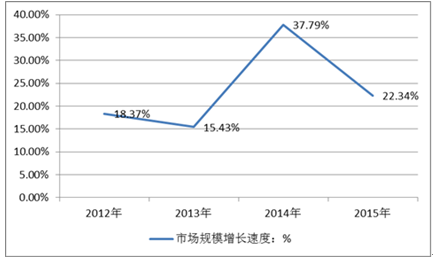 2012-2015年中國(guó)新媒體行業(yè)成長(zhǎng)速度分析