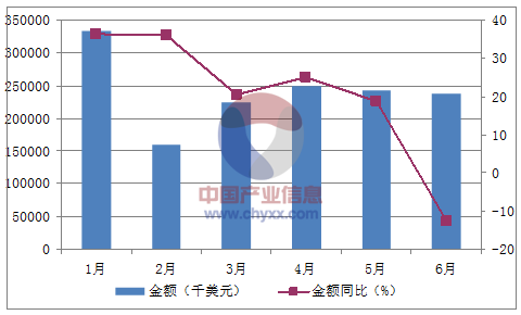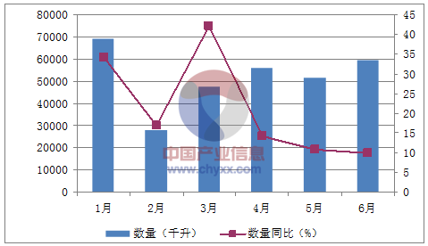 月份數量(千升)金額(千美元)數量同比(%)金額同比(%)1月69,197332,79134.336.22月28,047160,65016.836.13月47,737225,27642.120.64月56,087249,67414.2255月51,572242,90610.818.96月59,766237,34510-12.7數據來源:中國海關,中經先略數據中心整理