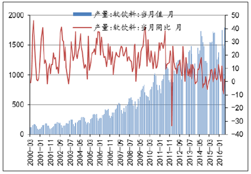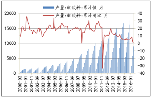 2016年中國(guó)軟飲料產(chǎn)量分析
