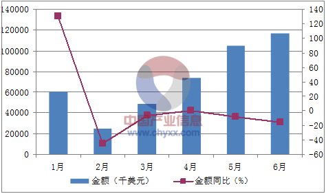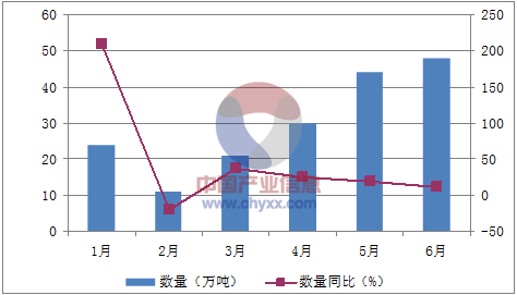 月份數量(萬噸)金額(千美元)數量同比(%)金額同比(%)1月2460,944209.7130.12月1125,370-19.4-45.13月2148,55336.3-6.34月3073,90324.30.15月44105,22319.7-8.26月48116,92011.3-16.1數據來源:中國海關,中經先略數據中心整理