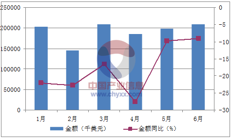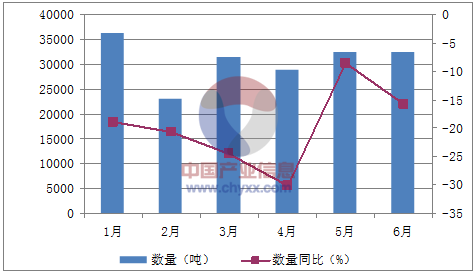 核心提示:智研咨詢數據顯示:2016年1-6月中國鋁材進口數量為184,385噸,同比下降20%;2016年1-6月中國鋁材進口金額為1,146,382千美元,同比下降18.3%。2016年1-6月中國鋁材進口量統計表如下表所示: 2016年1-6中經先略數據中心數據顯示:2016年1-6月中國鋁材進口數量為184,385噸,同比下降20%;2016年1-6月中國鋁材進口金額為1,146,382千美元,同比下降18.3%。2016年1-6月中國鋁材進口量統計表如下表所示:2016年1-6月中國鋁材進口量統計表月份數量(噸)金額(千美元)數量同比(%)金額同比(%)1月36,255203,366-18.9-22.12月23,057145,091-20.7-22.83月31,487208,506-24.5-16.54月28,781185,693-30.1-27.65月32,493198,208-8.6-9.76月32,319208,279-15.7-9.1數據來源:中國海關,中經先略數據中心整理2016年1-6月中國鋁材進口數量統計圖