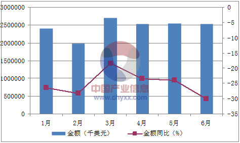 月份數(shù)量(萬個)金額(千美元)數(shù)量同比(%)金額同比(%)1月19,4812,412,120-19.3-26.42月14,3371,987,389-20-28.33月18,6962,698,082-13.6-18.34月19,6332,531,584-15.7-23.55月18,4822,541,047-20.8-246月19,1512,527,227-17.3-30數(shù)據(jù)來源:中國海關,中經(jīng)先略數(shù)據(jù)中心整理