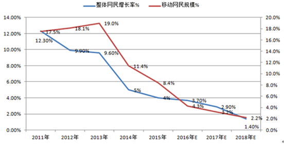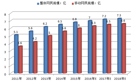 2011-2018年中國整體網民及移動網民規模