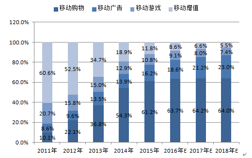 一、移動購物增長明顯,移動廣告市場份額穩步提升