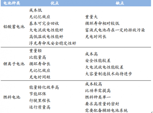 各類動力電池優缺點