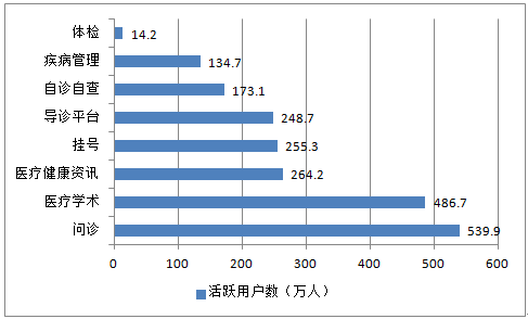 2015年第4季度中國移動醫(yī)療各細(xì)分領(lǐng)域活躍用戶數(shù)
