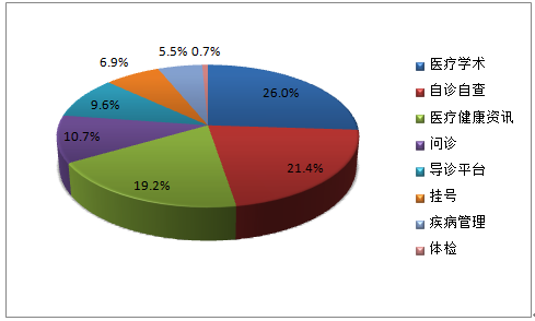 2015年中國移動醫(yī)療細(xì)分領(lǐng)域APP數(shù)量占比