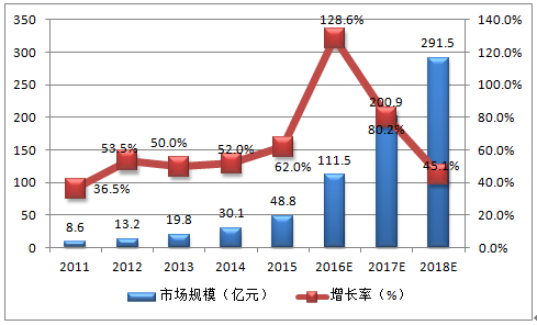 2016-2018年中國移動醫(yī)療市場規(guī)模預(yù)測