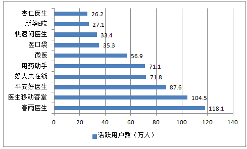 2015年第4季度中國移動醫(yī)療APP活躍用戶數(shù)排名