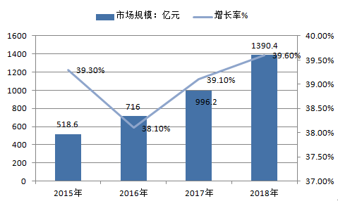 2015年中國IDC市場延續(xù)了高速增長態(tài)勢,市場總規(guī)模達到518.6億元人民幣,同比增長39.3%;未來三年整體IDC市場增速將保持在35%以上,到2018年,中國IDC市場規(guī)模將接近1,400億元,增速達到39.6%。
