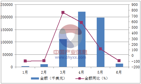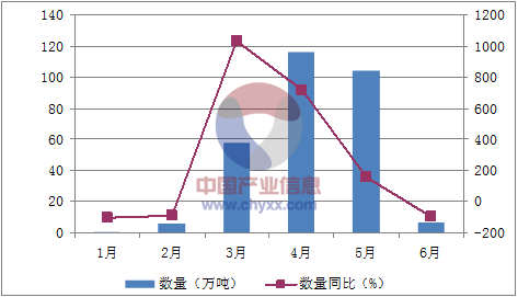 月份數(shù)量(萬噸)金額(千美元)數(shù)量同比(%)金額同比(%)1月13,212-98.6-97.92月612,269-89.7-92.33月58111,9961,035.00761.24月116222,270719.4583.45月104198,680156.6119.16月714,313-92.3-92.4數(shù)據(jù)來源:中國海關,中經(jīng)先略數(shù)據(jù)中心整理