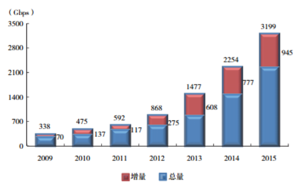 2009-2015 年中國互聯網骨干網間帶寬