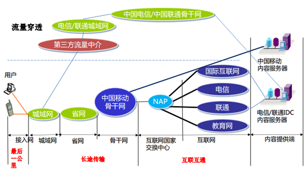 核心提示:一、“流量穿透”產業現狀由于互聯網上的內容大多數都是在中國電信、中國聯通的骨干網上(電信、聯通機房和合作 商機房中),其他的接入運營商如中國移動、廣電有線運營商和其他民營運營商都有與這兩 大運營商互聯互通的需求,一、“流量穿透”產業現狀