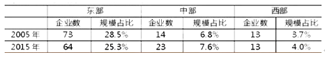 百強企業數量區域分布上,2015年東部地區共有百強企業64家,比2005年減少9家。其中2005年以江蘇省數量最多,2015年則以廣東省和山東省最多。而中、西部地區2015年百強企業數量分別為23家和13家。