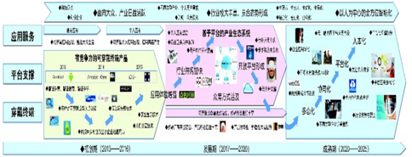 藍圖對可穿戴設備的產業鏈、可穿戴設備的終端、支撐服務、關鍵共性技術的創新發展軌跡、主要技術方案及代表產品和企業進行了全景展示。