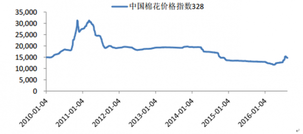 中國(guó)棉花價(jià)格指數(shù)328走勢(shì)