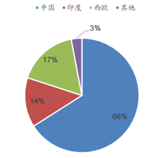2014 年世界纖維素纖維產量分布