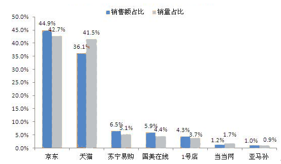 2016年上半年家電平臺銷售占比情況