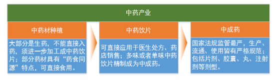 中藥飲片是指按中醫(yī)藥理論將中藥材經(jīng)過規(guī)范化的中藥炮制方法炮制加工、減毒增效后可直接用于中醫(yī)臨床的中藥。中藥產(chǎn)業(yè)包括三大部分,即中藥材、中藥飲片和中成藥,存在著較為明顯的上下游關系。中藥飲片可直接作為藥劑配方服用或直接服用,或進一步加工為中成藥,處于中藥產(chǎn)業(yè)的中間環(huán)節(jié)。