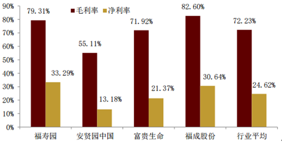 殯葬行業代表公司平均毛利率超 70%(2013-2015 年平均值)