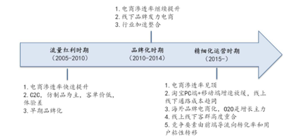 核心提示:回顧國內電商發展歷史,認為十年來經歷了三個重要時期,從流量紅利期(2005-2010年),到品牌化時期(2010-2014年),到精細化運營時期(2015年以后),而伴隨電商興起的品牌電商服務商,也從早期粗放式轉向精細化。2015年國內回顧國內電商發展歷史,認為十年來經歷了三個重要時期,從流量紅利期(2005-2010年),到品牌化時期(2010-2014年),到精細化運營時期(2015年以后),而伴隨電商興起的品牌電商服務商,也從早期粗放式轉向精細化。