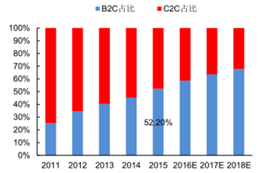 2015年國內電商行業規模達到3.8萬億,占社會零售消費品總額達到14%,其中B2C占比達到52.2%,首次超過C2C。強勢品牌過去不太愿意觸碰電商渠道的顧慮在于渠道運營規則復雜、假貨橫行難于管理、線上線下沖突毀損品牌價值,但隨著電商占比的提升,品牌已無法忽視電商渠道的重要地位。對比天貓旗艦店中的普通商家和第三方運營店鋪,可以發現通過第三方運營企業經營的店鋪單店平均銷售額是普通店鋪的2倍,因此牽手優秀的第三方品牌服務公司反而是更好的選擇。