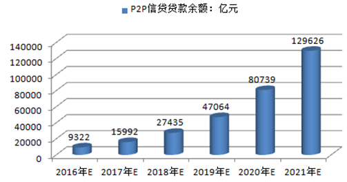 2016-2021年中國P2P信貸行業貸款金額預測