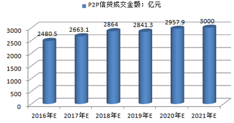 2016-2021年中國P2P信貸行業市場的成交金額預測