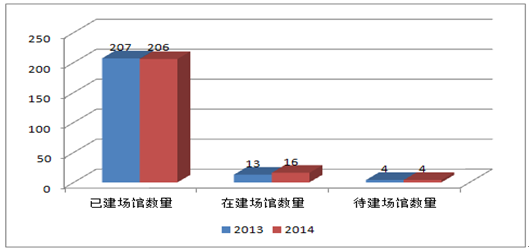 2013-2014我國專業場館數量對比