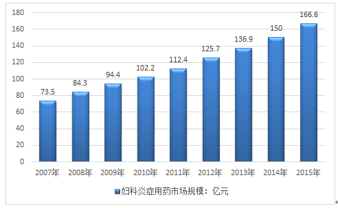 隨著社會經(jīng)濟文化的發(fā)展以及女性自我保健意識的增強,近年來,婦科炎癥治療藥物市場需求巨大,婦科炎癥用藥銷售金額增長很快,該市場呈現(xiàn)出熱點頻現(xiàn)的繁榮 景象。2014年,我國婦科炎癥用藥市場規(guī)模達150.0億元。