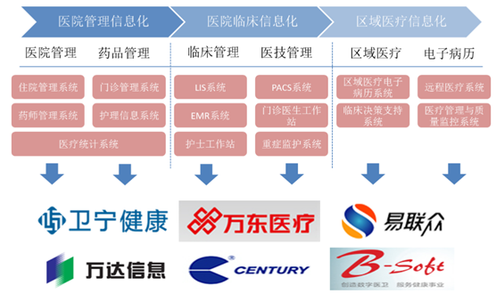 向醫院收費的切入點包括提高醫院管理效率以及提高收入。在這 兩個層面,醫院的需求較強,針對此產生的盈利模式有較大空間,但 基本上與醫療信息化更相關,而非純互聯網模式。目前向醫院收費的 公司盈利模式主要包括三類:一是軟件銷售以及維護運營收費;二是 硬件銷售;三是遠程監測服務收費。