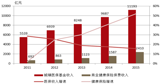 隨著醫療行業的市場化程度提高,會刺激商業健康險 市場的持續高速發展,預計到 2020 年,商業健康險市場規模將達到 2 萬億,成為現有醫療保障體系的有效補充。