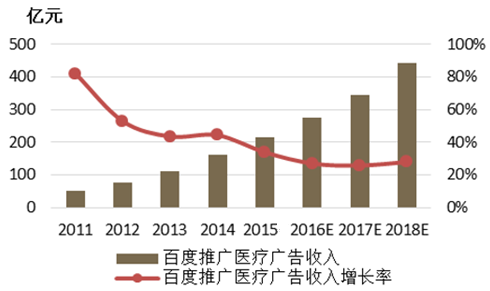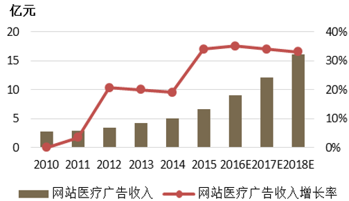 從解決醫療行業信息不對稱的角度看,互聯網已經充分發揮了其 連接的職能。從就診的環節分,分為院內和院外兩塊。院內主要是通 過信息化建設,解決院內的信息不對稱;院外主要通過廣告、論壇等 形式解決患者和醫療機構、醫生之間的信息不對稱。 互聯網廣告具有成熟的盈利模式,目前有兩種模式,分別是搜索 引擎推廣、網站頁面廣告。從下圖可以看到,這兩種模式的盈利都進 入穩定增長期,預計未來三年的復合增長率為 30%左右。其他互聯網 商業模式盈利之路仍然坎坷。