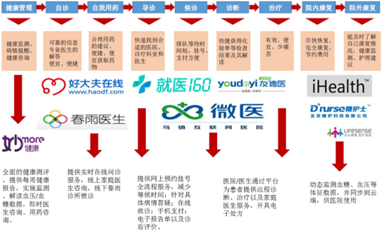 縱觀互聯網發展史,相繼顛覆了紙媒、通訊、零售、旅游等行業領域,其核心脈絡是從易到難依次 滲透到具備低效率、多痛點、空間大、長尾特征的行業中。我國醫療 服務行業正是具備大空間、低效率、多痛點、長尾特征的行業,互聯 網+醫療發展潛力巨大。從服務對象看,以醫療服務生態中三大核心要素—患者、醫生和 醫院為服務對象,形成三類主要的互聯網醫療商業模式,即服務于患 者環節的互聯網醫療、服務于醫生環節的互聯網醫療和服務于醫院環 節的互聯網醫療。