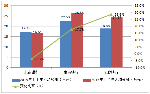 核心提示:看來這一輪受降薪潮沖擊的金融機構,還不只是券商,“躺著賺錢”的銀行,也在受沖擊之列。16家上市銀行中,多達10家銀行人均薪酬出現不同程度的下滑,其中民生銀行上半年人均薪酬同比下滑23.2%至14.6萬元,無論是下滑幅看來這一輪受降薪潮沖擊的金融機構,還不只是券商,“躺著賺錢”的銀行,也在受沖擊之列。16家上市銀行中,多達10家銀行人均薪酬出現不同程度的下滑,其中民生銀行上半年人均薪酬同比下滑23.2%至14.6萬元,無論是下滑幅度還是絕對金額,均位列上市銀行第一位。幾家歡喜幾家愁,16家銀行中,仍有6家銀行上半年人均薪酬有所增加,其中寧波銀行、南京銀行分別同比實現28.6%、17.7%的增幅。