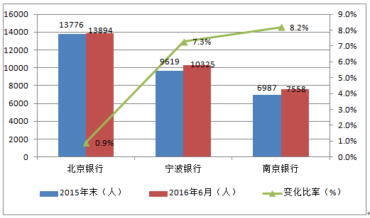 城商行上半年員工數量