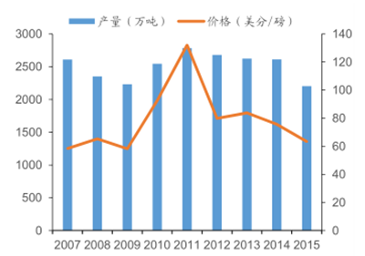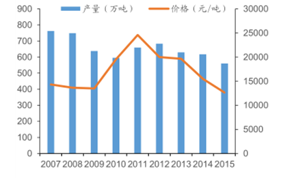 天然纖維市場空間受限于可種植面積及行業盈利能力下降。目前以棉花為代表的天然纖維仍然占全部纖維需求的約30%,但其未來增長空間不容樂觀。首先,棉花等天然纖維的產量受制于可耕種面積,而近幾年來全球和中國棉花種植面積不斷縮減,對棉花產量造成了負面影響。其次,從2012年開始棉花價格整體不斷下跌,行業整體盈利性變差,抑制了生產者的積極性,對供給造成負面影響。