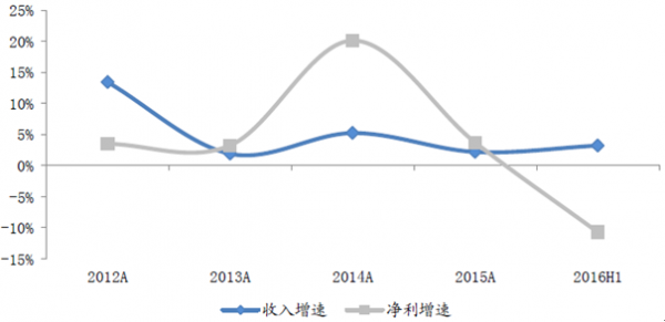 家紡類企業收入增速整體13 年之后基本維持在0-5%的區間,凈利潤增速在14 年達到20%的峰值,之后隨著消費市場的低迷不振,增速開始迅速下降,16 年上半年降至-11%。目前行業內公司也在積極探索,只是短期內業績貢獻有限。