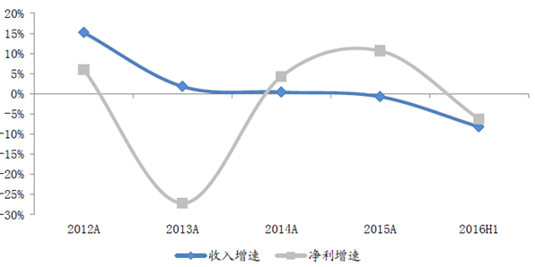 近年來,鞋帽業收入增速不斷下滑,從12 年的15%已跌至16 年上半年-8%,凈利波動較大,目前回暖趨勢不明。