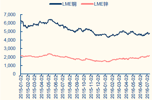 LME銅與LME 鋅現(xiàn)貨結(jié)算價格(美元/噸)