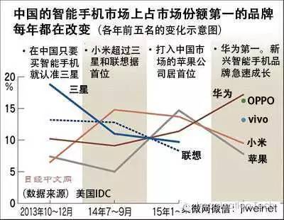 核心提示:全球最大的智慧手機市場中國正在發生不尋常的變化。在中國,不僅是握有全球最大市占率的韓國三星電子和第2位的美國蘋果,就連在當地曾擁有超高人氣的小米都被排在其后的智慧手機廠商全球最大的智慧手機市場中國正在發生不尋常的變化。在中國,不僅是握有全球最大市占率的韓國三星電子和第2位的美國蘋果,就連在當地曾擁有超高人氣的小米都被排在其后的智慧手機廠商趕超。而躋身前列的很多是沒有名氣的中國新興智慧手機廠商。在市占率首位寶座幾乎每年都會易主的中國,“以弱勝強”已不再是新鮮事。