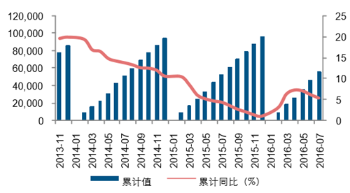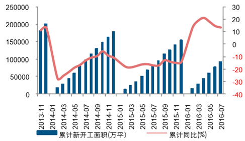 2016H1 累計新開工面積同比增速為 14.90%