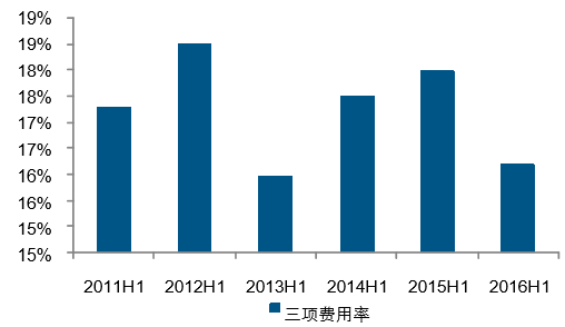 2016H1 三項費用率下降 1.80 個百分點